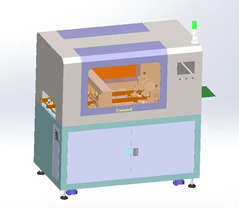 14.Phía sau thiết bị có trang bị băng tải hạ bảng, có thể đưa thành phẩm trực tiếp lên dây chuyền kiểm tra.