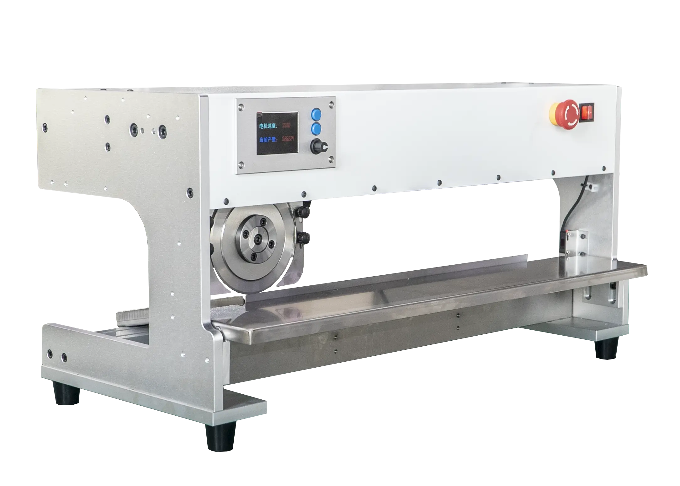 3.Hành trình di chuyển của dao cắt: 0–360 mm (chiều dài dao có thể đặt theo yêu cầu).Độ cao dao cắt có thể tinh chỉnh từ 0–2 mm để phù hợp với các độ dày PCB khác nhau, giải quyết vấn đề độ sâu nông của rãnh V-CUT trên PCB.